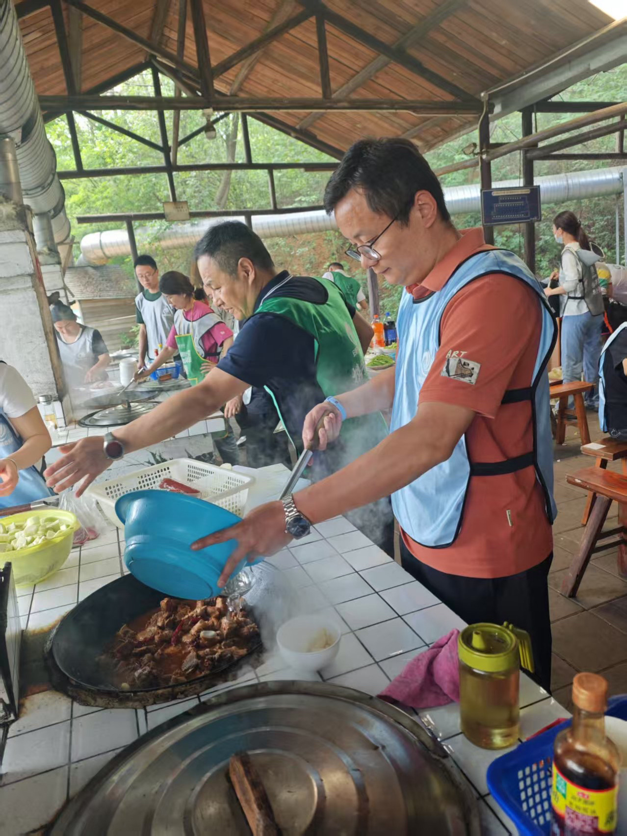 午餐环节变身“团队大锅灶”体验农家土灶烧饭,大家领取食材后,生火、切菜、掌勺分工明确。队员们化身“大厨”,在炊烟袅袅中烹制出地道的农家菜肴。这一过程不仅展现了团队的分工默契,更让成员们感受到“自己动手、丰衣足食”的成就感。