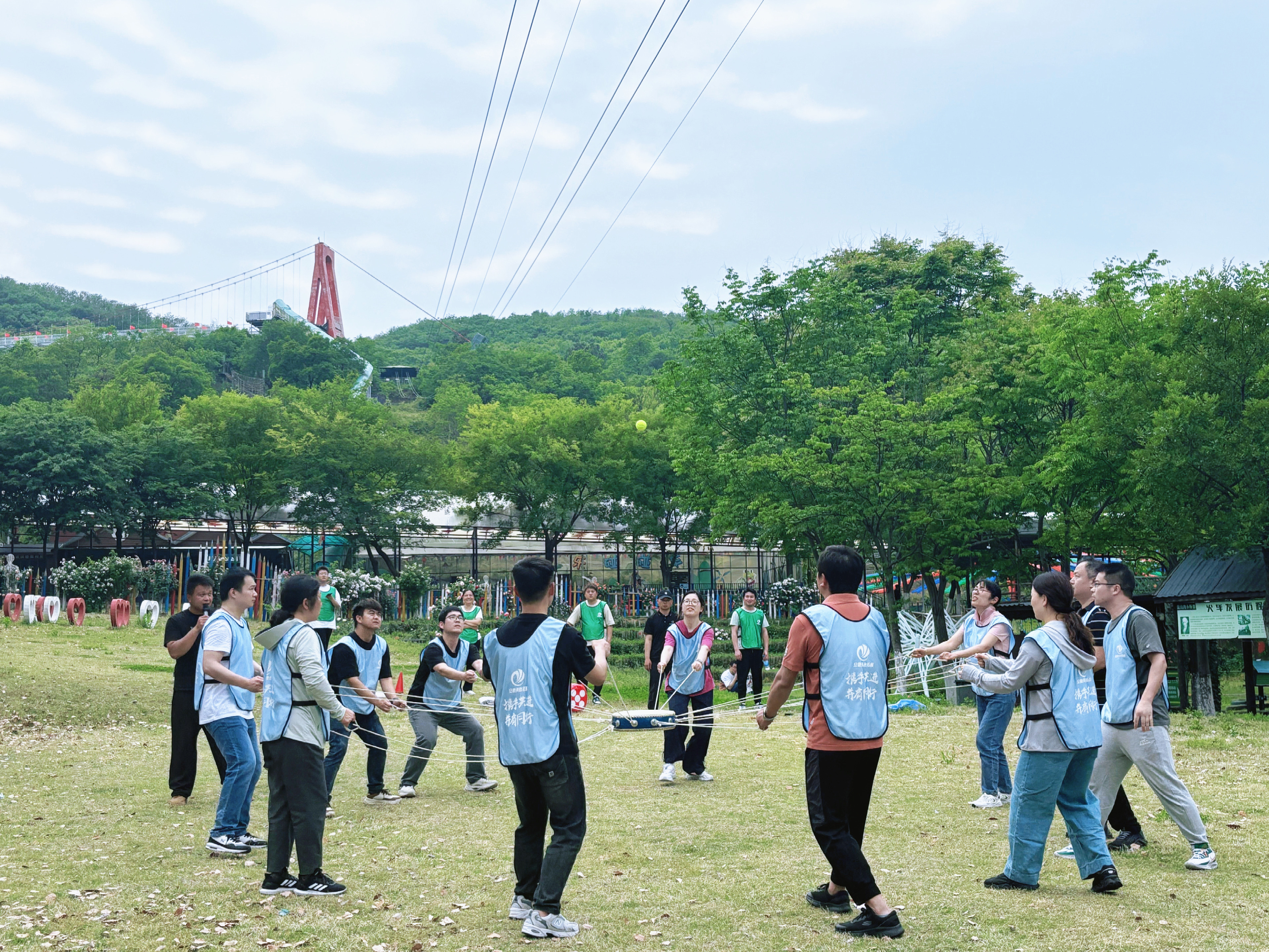 下午在“鼓动人心”项目中,团队成员需合力控制鼓面,连续击球。通过反复调整节奏与协作方式,大家逐渐掌握了技巧,最终实现目标。这一环节深刻诠释了“专注”与“信任”在团队中的重要性。